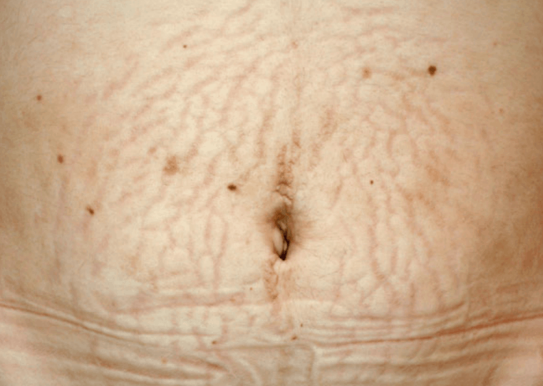 Striae Rubrae: Fresh, reddish or purplish marks caused by early stretching of the skin.